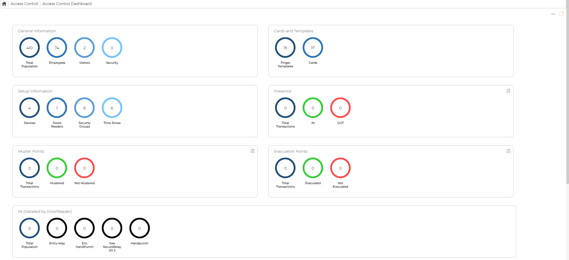 The Access Control Dashboard gives you an "At A Glance" summary of what's happening in the system regarding Access Control.