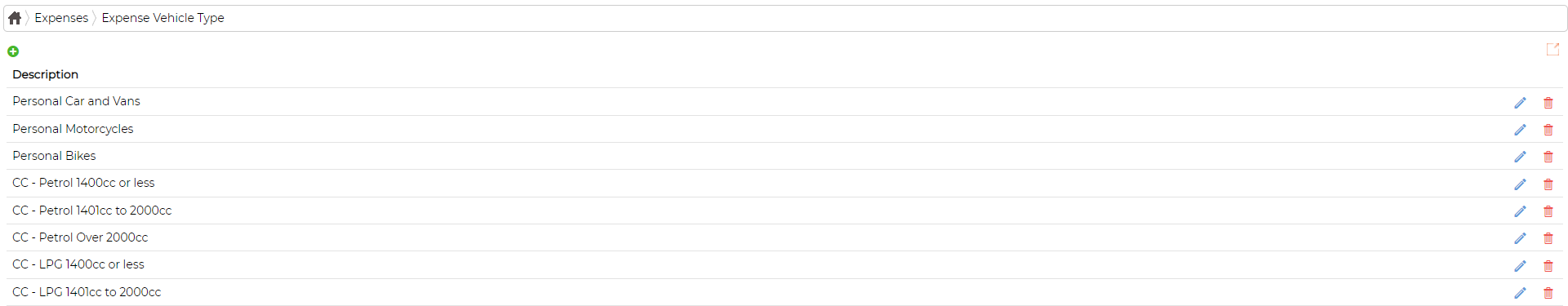 Edit Expense Vehicle Type