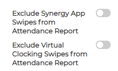 Exclude Virtual Clocking and Synergy App swipes from Attendance report