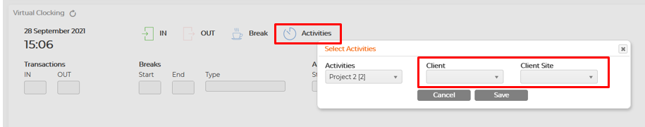– Option to start/end Activity swipe against Client and Client Site (Field Client can be renamed as Projects as well)