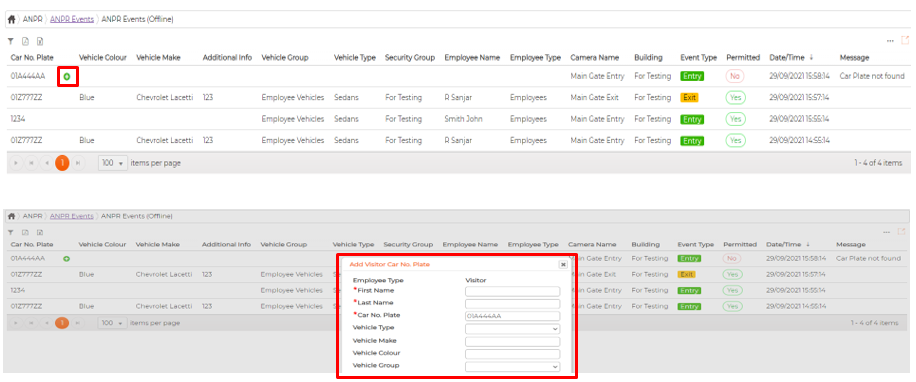 Option to allocate unknown vehicle no. plate to visitors in the system