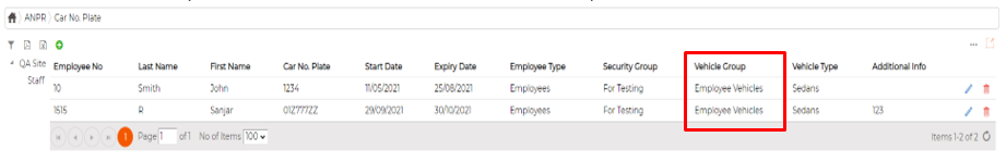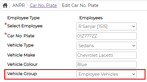 Car no plate screen – Additional column and field “Vehicle Group” added