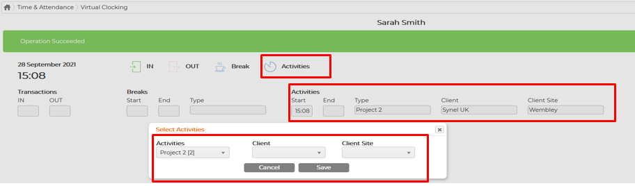 Option to start/end Activity swipe against Client and Client Site (Field Client can be renamed/used as Projects as well)