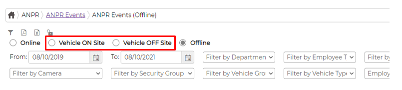 iii. Option to view Vehicle that are currently On-Site or Off-Site. If on-site, it also displays the parking no allocated to the vehicle