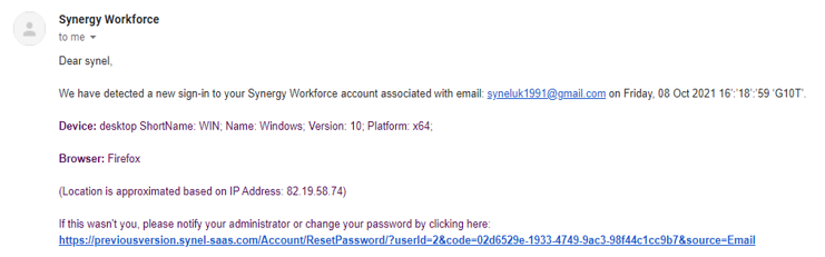 However, now system will send an email notification to notify the user when new sign-in is detected