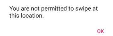 If employee is not permitted to swipe on location – “You are not permitted to swipe at this location” message will appear for the user.