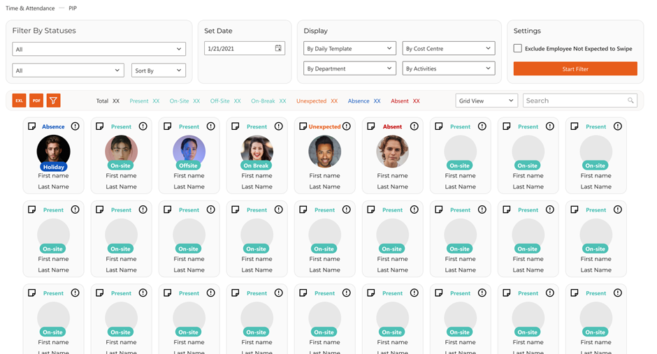 the current state of the business, who is on-site, who is on planned leave (absence)