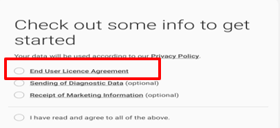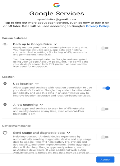 9. Do not enable backups on Google drive and switch off Allows scanning and Send usage data and diagnostic data on next screens